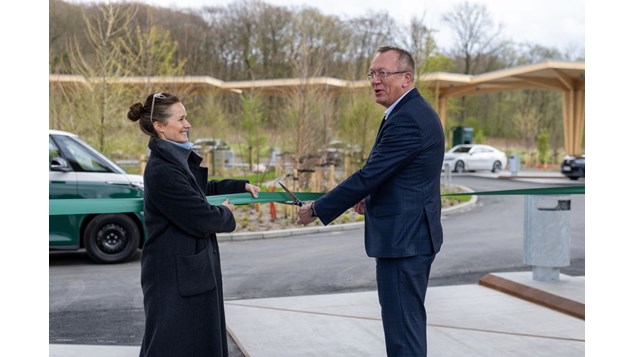 Hun indviede den nye station med Jan Riber Jakobsen, borgmester i Aabenraa Kommune, som er glad for at kunne byde Clevers nye lynladestation velkommen til kommunen.